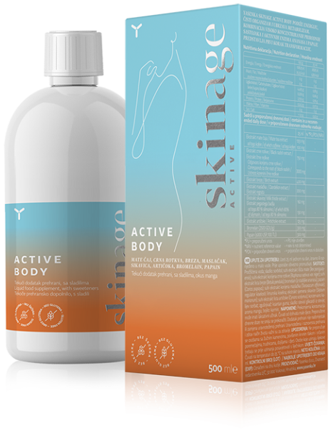 Yasenka Skinage ACTIVE BODY je tekoče prehransko dopolnilo, ki vsebuje kombinacijo visoko koncentriranih in naravnih rastlinskih izvlečkov, ter aktivnih encimov ananasa in papaje.